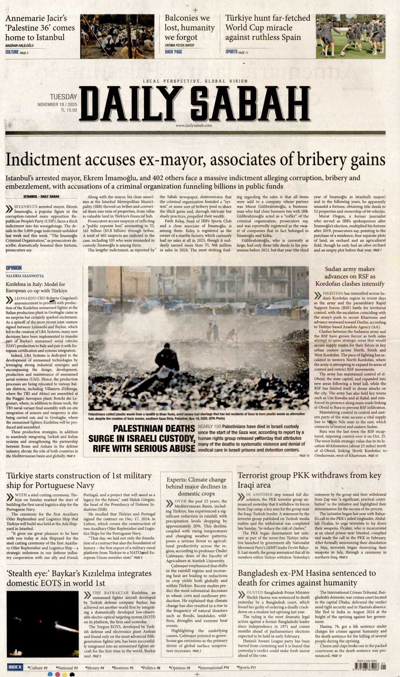 DAİLY SABAH Gazetesi 18 Kasım 2025, Salı Günü Manşeti